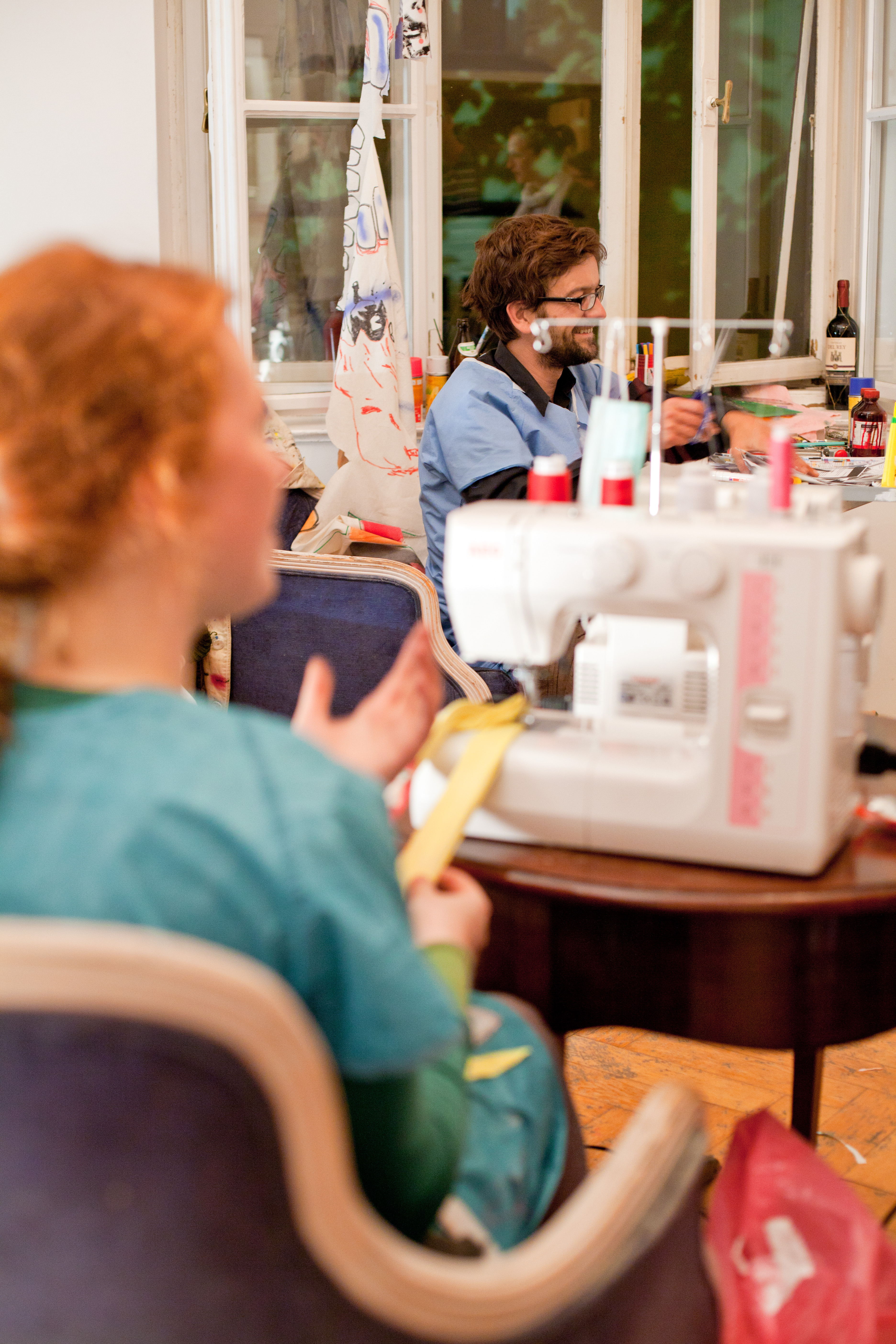 Surrounded by little piles of textiles, Stephanie Müller took on the role of the therapist. She created self-made products that were meant to help the visitors with their issues (if they had any and if they were willing to share them). Whatever the problems were, she tried to find an original response to it. One girl had issues with time management, so Stephanie Müller created an oversized clock which might as well serve as a small pillow to relax on. Another visitor was telling them about being new in town and not knowing how to respond to different people and how to deal with the friendships she has made. A textile map was designed for her together with some small figures, which she could stick on the map and with which she could playfully try out different social constellations or, if fed up with it all, take herself out of the equation by removing the figure that represented her. Again, the textile materiality helped the creation of yet another use: the map could also serve as a blanket, as a little piece of home in a new town.