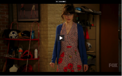 In New Girl Jess is situated as infantilized but also, disturbingly – through the narrative, framing and camera movements – as an object of desire. Jess shares a flat with three men.The framing and editing usually positions Jess in one frame while her male roommates are in the next, watching her with a mixture of condescending bemusement and astonishment. The roommates’ condescending gazes underline a narrative power imbalance, which prevents identification with Jess. The narrative invites the male characters and spectators to gaze at Jess rather than stare with her. Jess is as such simultaneously situated as the silly child and the woman that deserves looking at. Jess’ to-be-looked-at-ness is further underlined by her appearance. Usually dressed in short, flowery ‘cutesy’ dresses and ballerina shoes, she evokes the sexualized image of the innocent schoolgirl.
